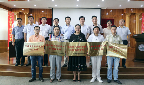 2016年作为医院“十三五”规划的起始之年,也是附院的“学科建设年”,在院领导的高度重视下,完善了学科建设体系,健全了组织,明确了责任,扎实推进,成效显著。经科室申报,各职能部门按《学科考评指标和标准》进行评分,院学术委员会审核及院长办公会讨论通过,神经内科等五个科室被评为重点建设学科,血液肿瘤科等八个科室被评为重点培育学科,医院领导班子为这些科室进行了授牌。